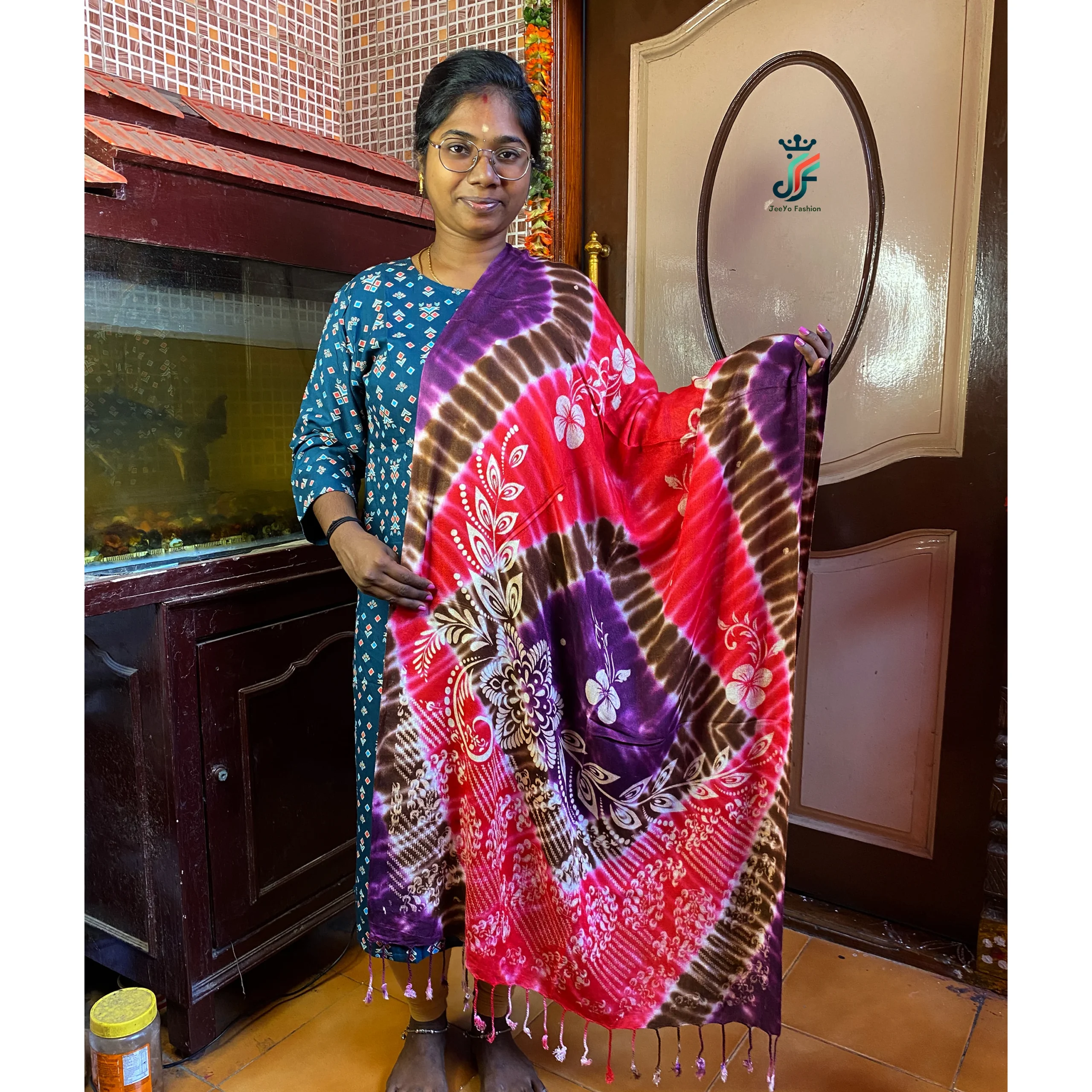 Add a vibrant touch to your outfit with this premium multicolor tie-dye cotton stole for women. Soft, breathable and lightweight – perfect for daily wear, office styling and festive occasions.