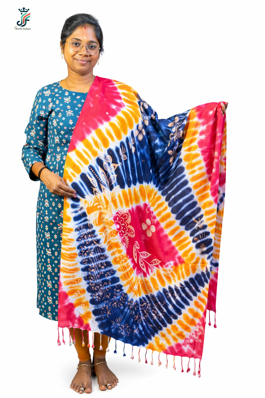 Add a vibrant touch to your outfit with this premium multicolor tie-dye cotton stole for women. Soft, breathable and lightweight – perfect for daily wear, office styling and festive occasions.
